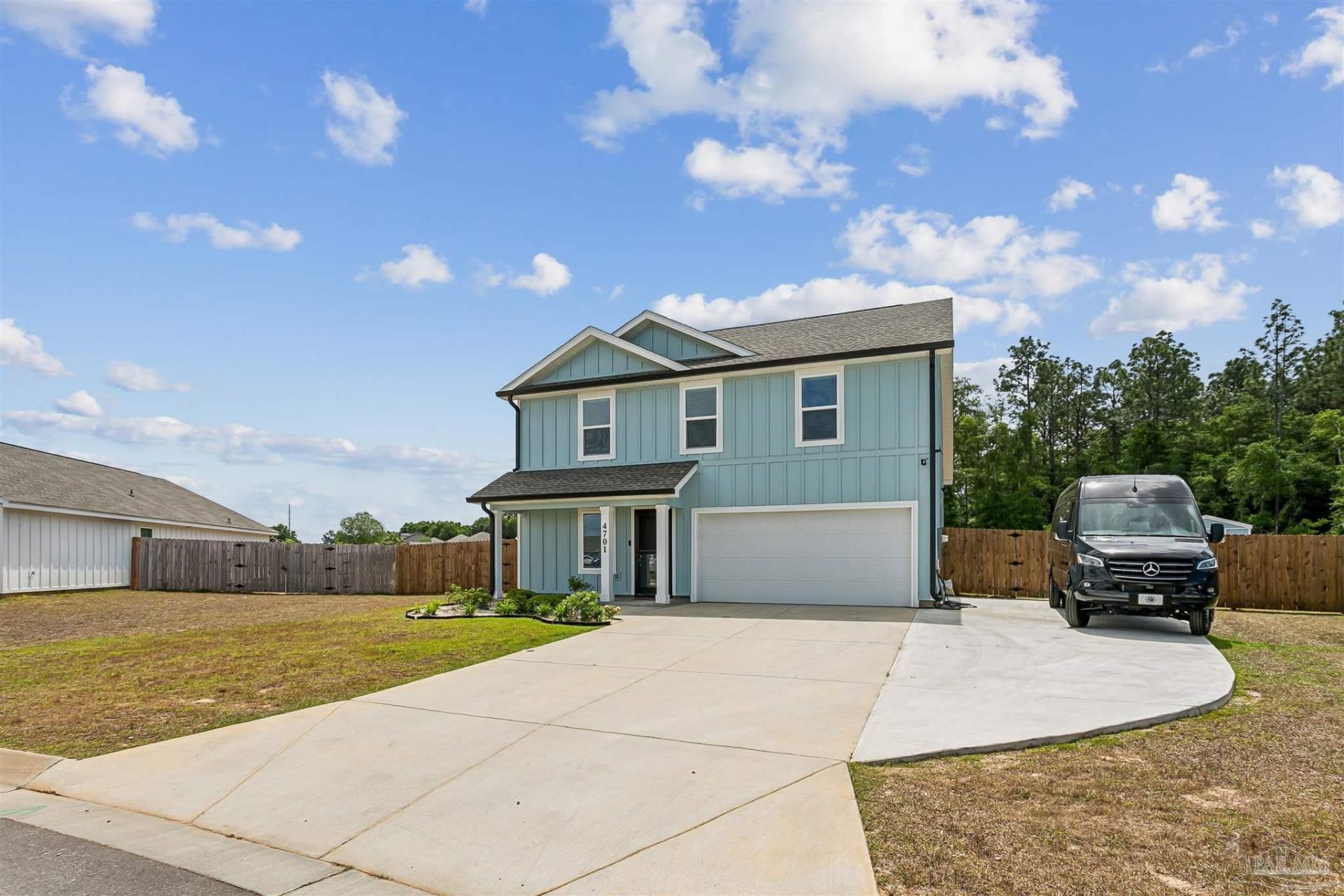 This is one of the coolest 2 year old new construction homes you will see on the market today with all the additions the homeowners have made!! 4 big bedrooms, 2.5 baths. Extra concrete parking with double gate that leads to a MASSIVE backyard. You could fit 3 inground swimming pools back there!! It's definitely one, if the not biggest lots in the neighborhood. They had it painted a beautiful light coastal blue with black doors and gutters which just adds to the appeal! The master, master bath and big walk-in closet are downstairs as well as the half bath, while the 3rd bath and 3 other bedrooms are upstairs! Did I mention the HUGE play area...read more